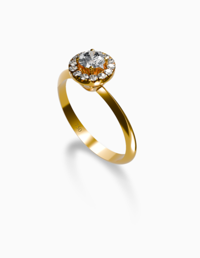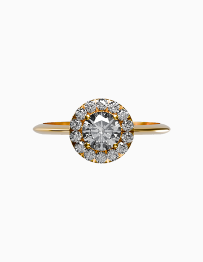 Each Sonata ring reflects the beauty of timeless commitment and refined brilliance. Expertly crafted in 18k gold, a luminous central diamond is embraced by a delicate halo of smaller diamonds, enhancing its sparkle with soft radiance.