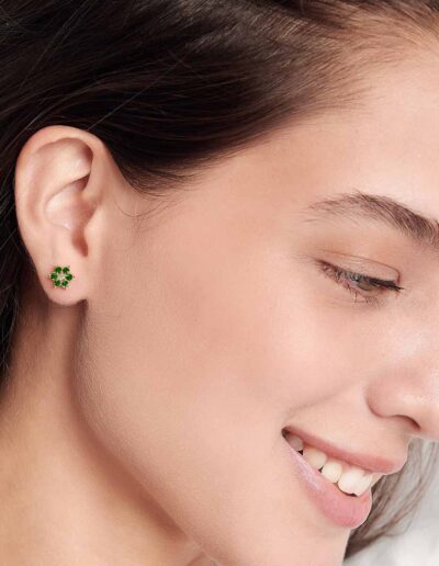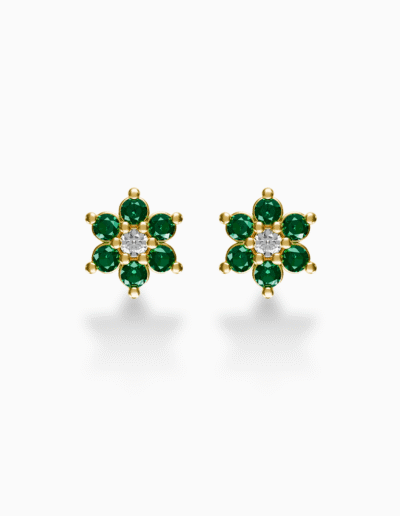 -18k yellow gold earrings. -Carat total weight: 0.42 Emeralds -Carat total weight: 0.07 Diamonds