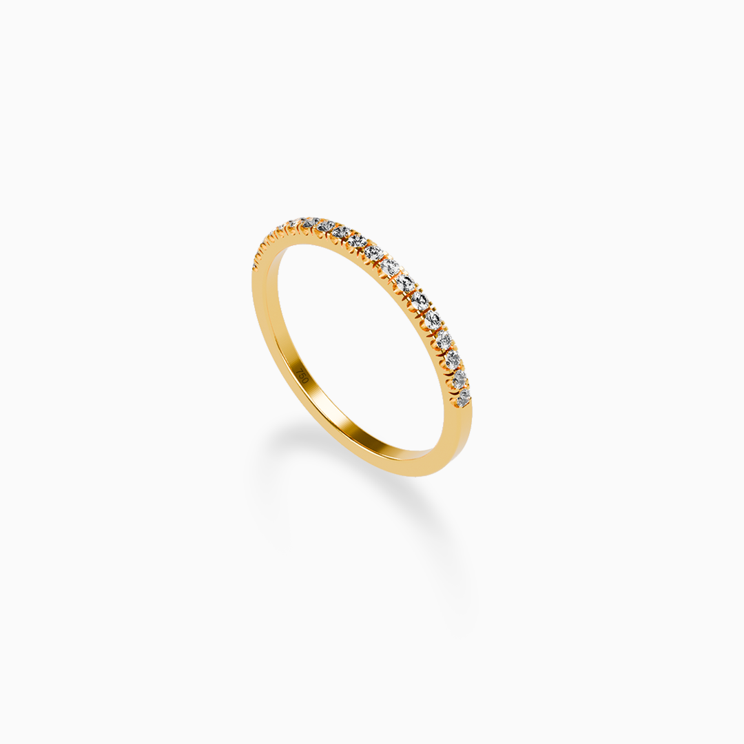 Each Sonata band captures the beauty of lasting connection and refined simplicity. Expertly crafted in 18k gold, this ring features a radiant row of diamonds that symbolize timeless elegance. A versatile piece, perfect for everyday wear or special occasions.