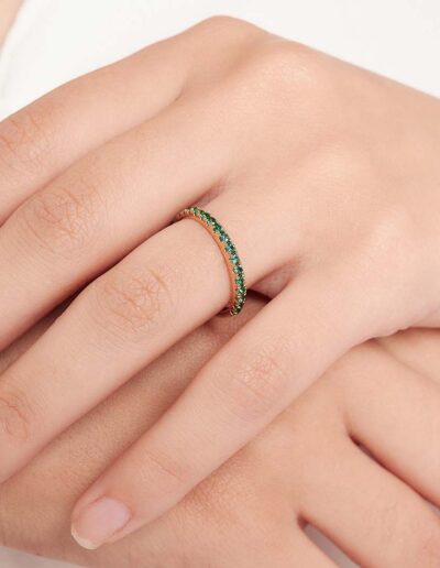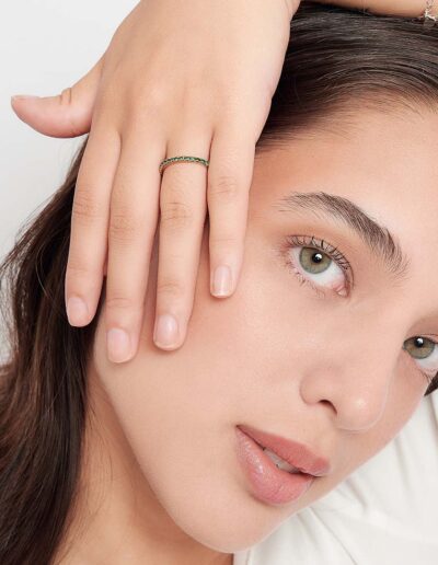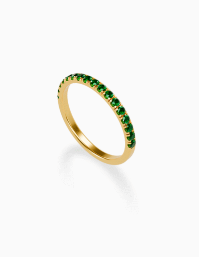 Each Sonata band captures the beauty of lasting connection and refined simplicity. Expertly crafted in 18k gold, this ring features a radiant row of emeralds that symbolize timeless elegance. A versatile piece, perfect for everyday wear or special occasions.