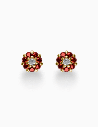 Inspired by the brilliance of our finest gemstones, the Ruby Rosette earrings features a floral silhouette with a central diamond, capturing light and color from every angle. A timeless expression of elegance and femininity.