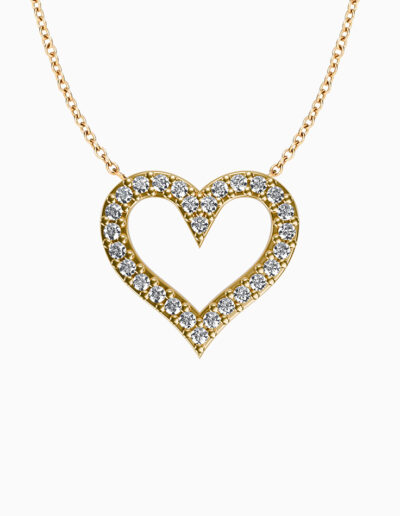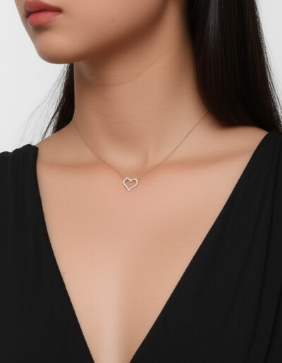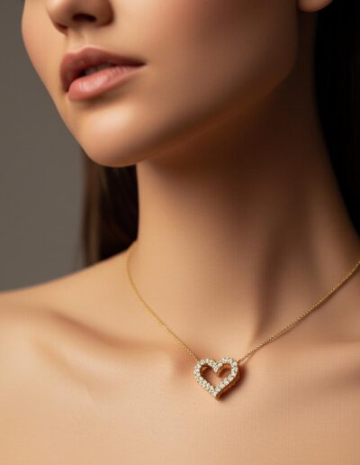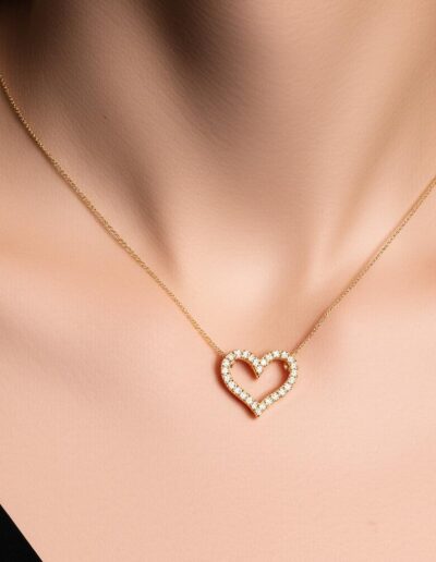 “The Diamond Heart” necklace is more than just a beautiful piece of jewelry; it is an emblem of affection, passion, and unwavering connection. This exquisite pendant features a perfectly formed heart, meticulously crafted from gleaming 18k gold and set with a dazzling array of brilliant-cut diamonds. Each facet catches the light, creating a radiant display that speaks volumes without uttering a word. Whether it is a testament to romantic love, a celebration of family bonds, or a personal reminder of self-love, “The Diamond Heart” rests close to the wearer’s heart, embodying the deepest emotions. Delicate enough for everyday wear yet captivating enough for special occasions, this necklace is a cherished keepsake that will be treasured for a lifetime, a tangible representation of love’s enduring power.
